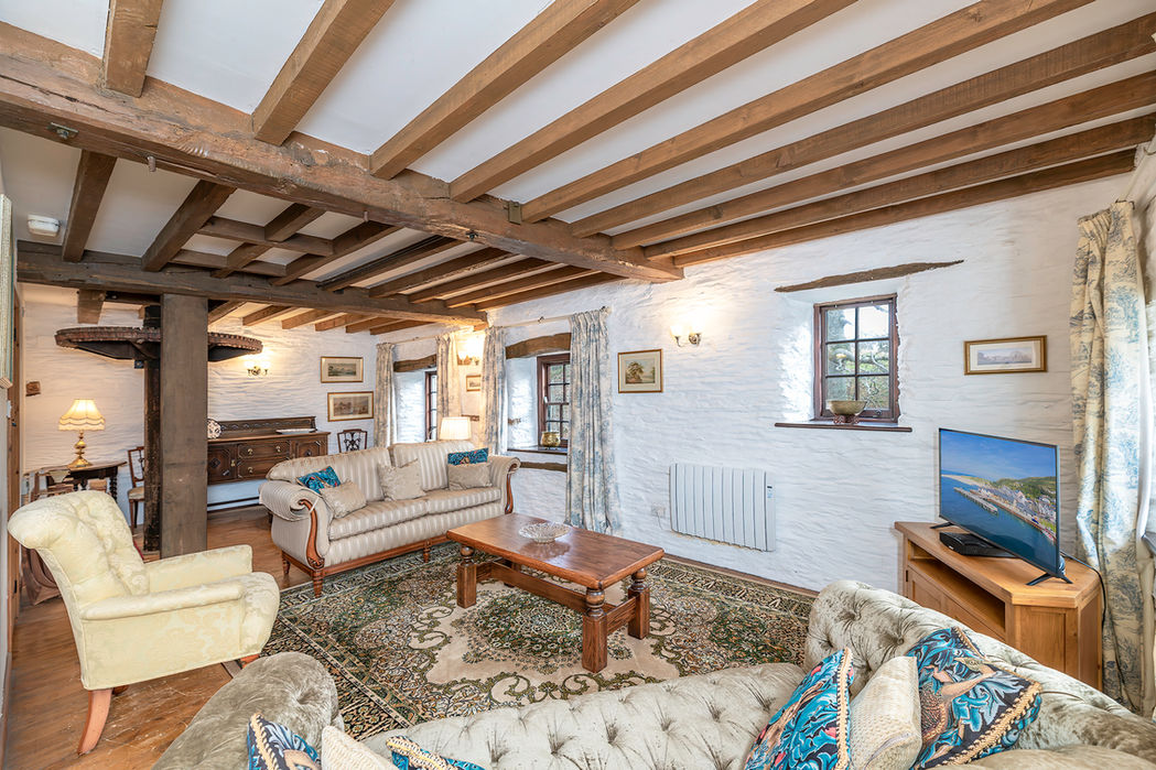 Original features abound: in the kitchen, behind a glass screen, you'll see the original cogs – the pit wheel, wallower and spur wheel that were powered by the waterwheel on the outside wall. Upstairs you'll find a comfortable living room with views toward Machynlleth and—as an unusual centrepiece—the wooden crown wheel and shaft for the grinding stones.